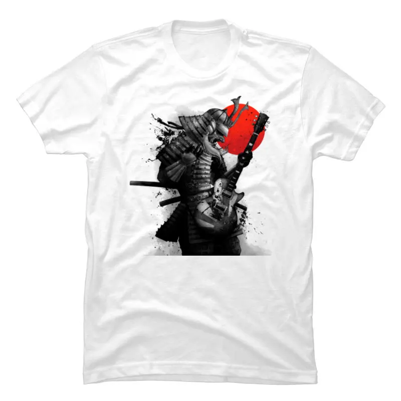 Japanese Ninja Samurai Guitar Rock White T Shirt Newest Pure Cotton O-Neck Simple Style Tee Shirt Mens High Quality Sweatshirt