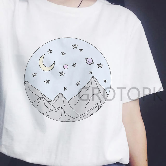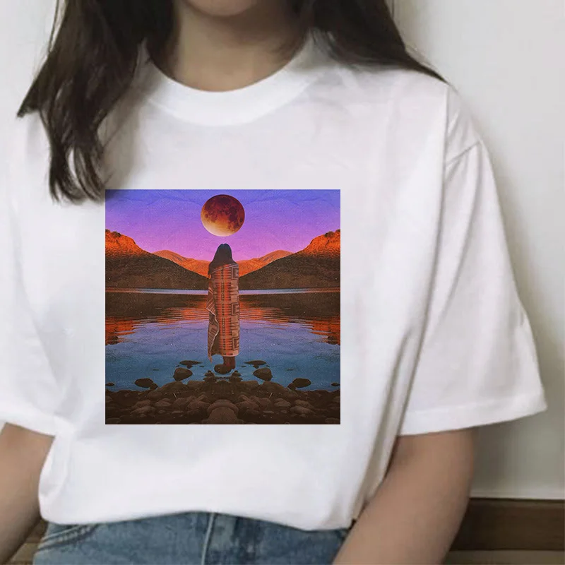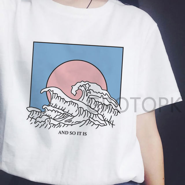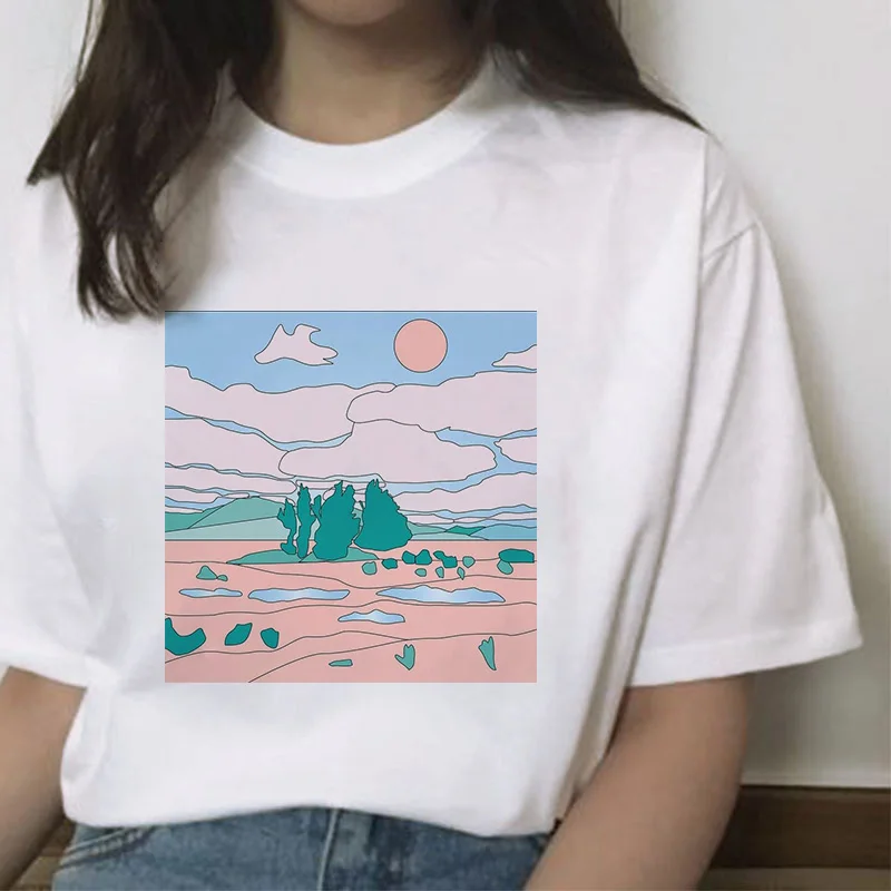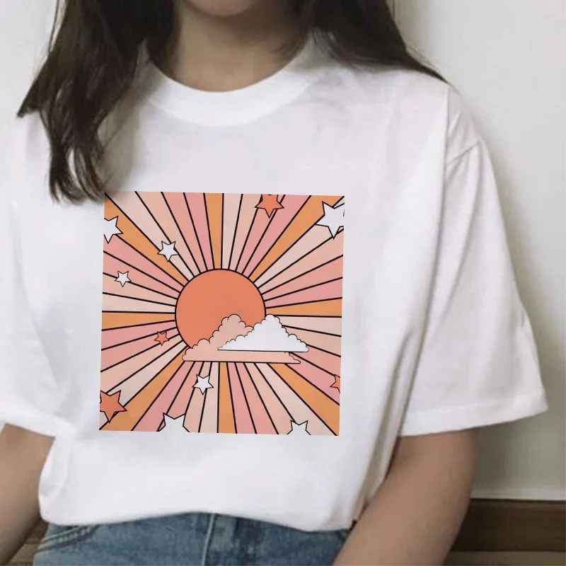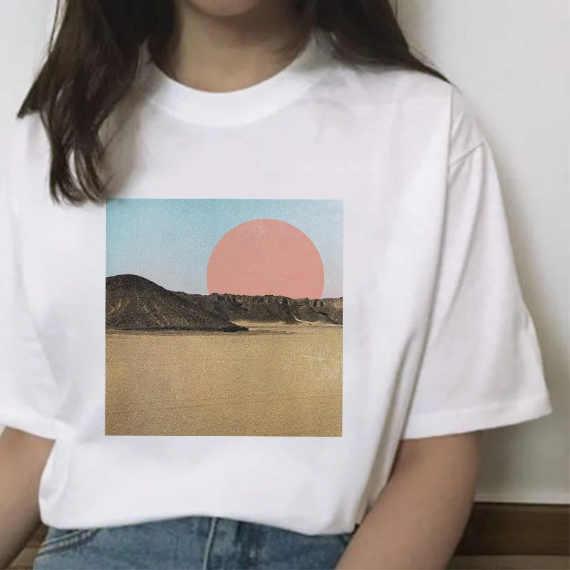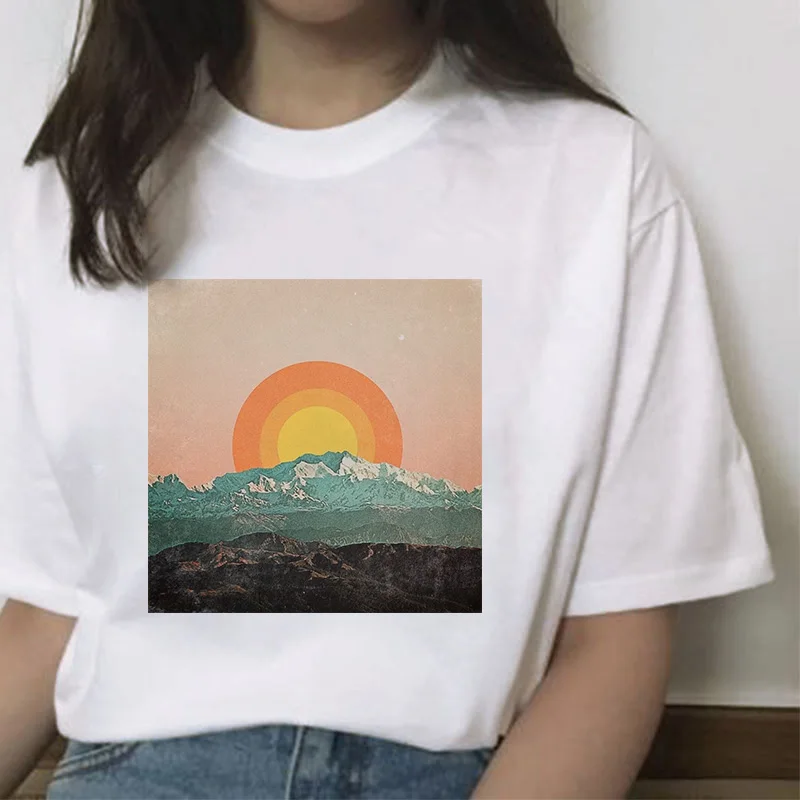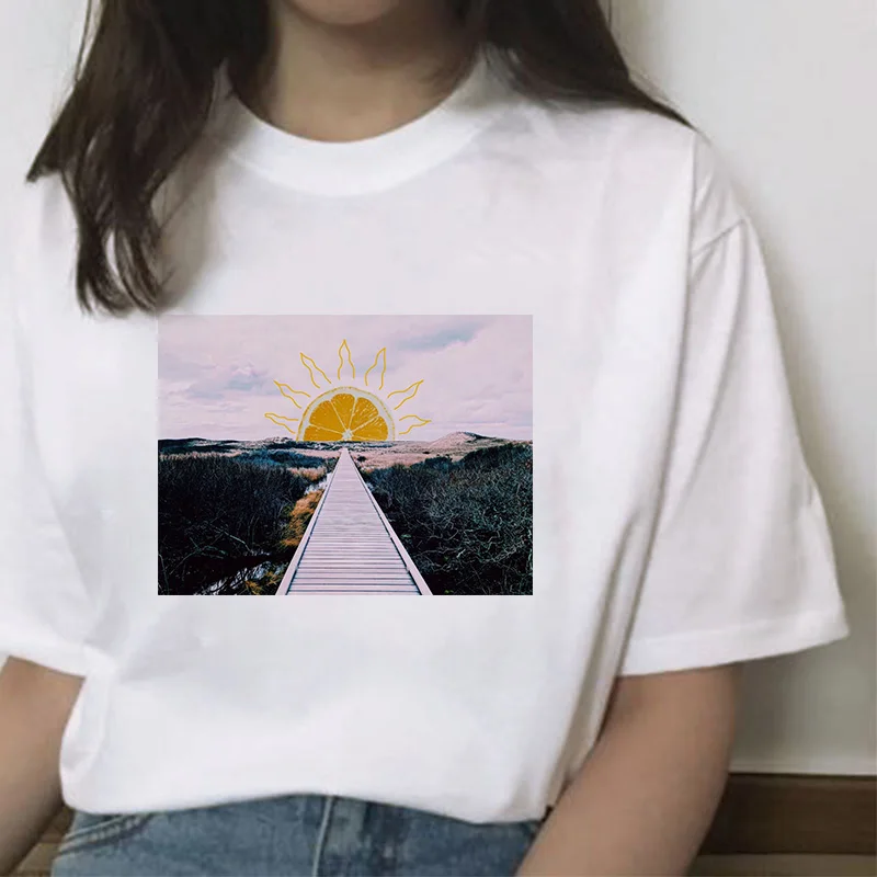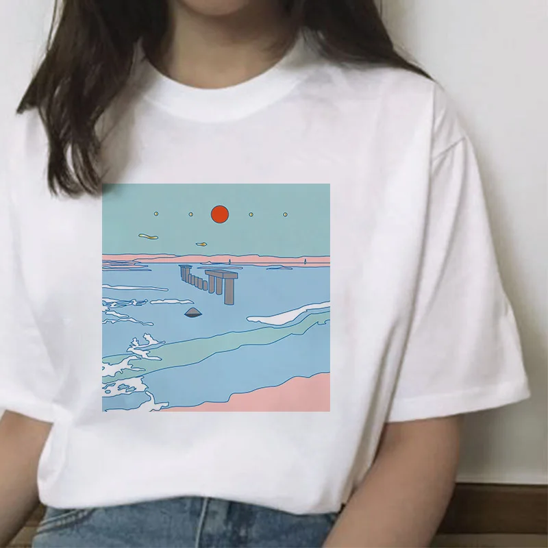 Japanese Style T-shirts for Women Sunset Over The Sea Harajuku White Tshirt Korean Tshirt Summer 2019 Tee Shirt Femme Vogue