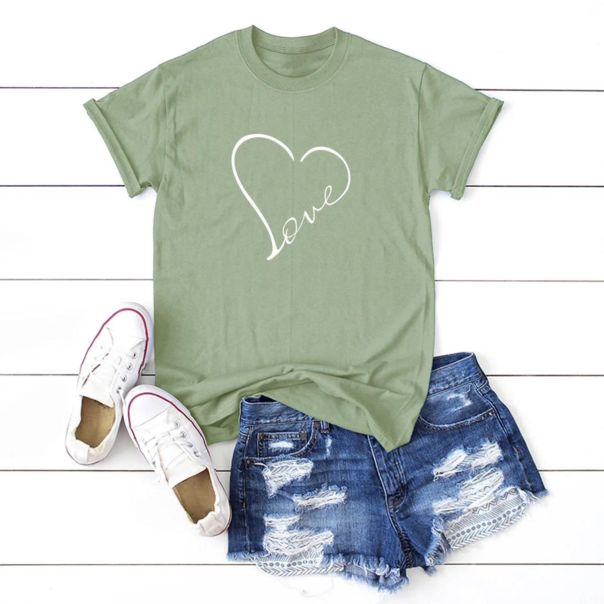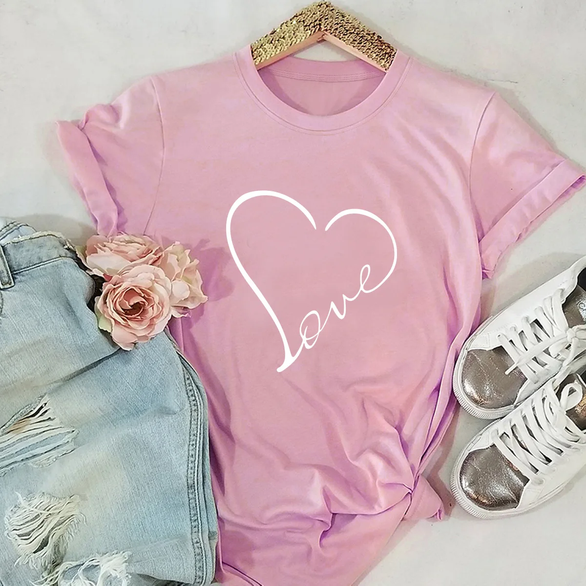 JFUNCY Cotton T-shirt Women Love Print T-shirts Women’s S-5XL Kawaii Harajuku Female Shirts Top Clothes Camiseta Mujer