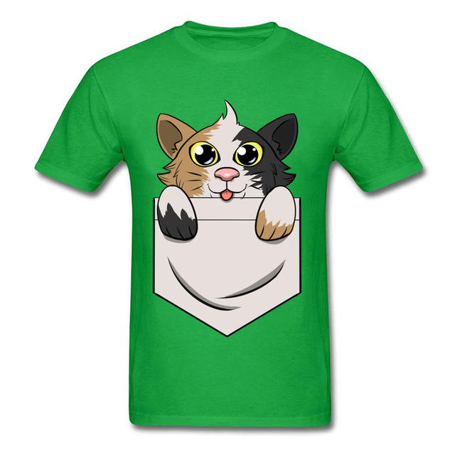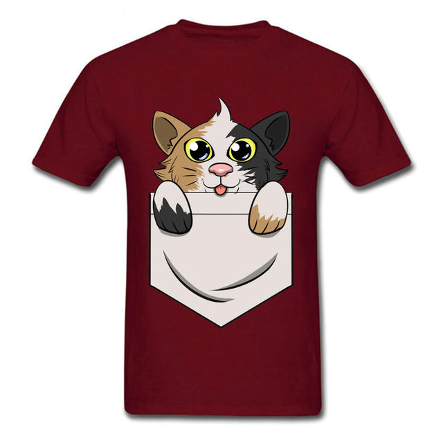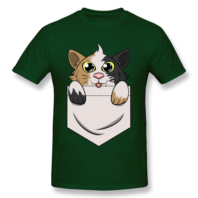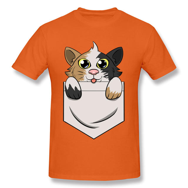 Kawaii Adorable Cat Pocket Graphic Printed On Men Tshirts Anime Short Sleeve Autumn New T Shirt Love Day Crewneck Cotton Tops