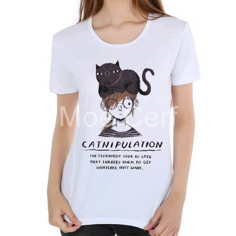 Kawaii Girl With Cat Print Women shirt Casual Hipster Funny t shirt For Girl Top Tee Tumblr Drop Ship 2019 New Arrival L17-99