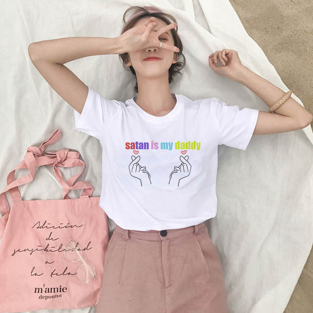 Korean Style Fashion Kpop Finger Heart Gesture Print T-shirt Women Clothes Summer Harajuku Short Sleeve Ulzzang Graphic Tees Top