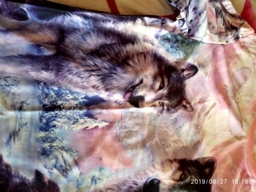 Fast delivery, good, bright printing quality. Dense, stretching fabric. Looks like in the picture. Dimensions correspond. I liked it very much!