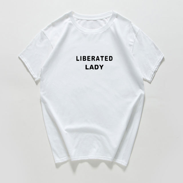 Liberated lady oversize 100%cotton women t shirt Summer Clothing 2019 letter printed loose streetwear Tee Tops Camiseta Feminina