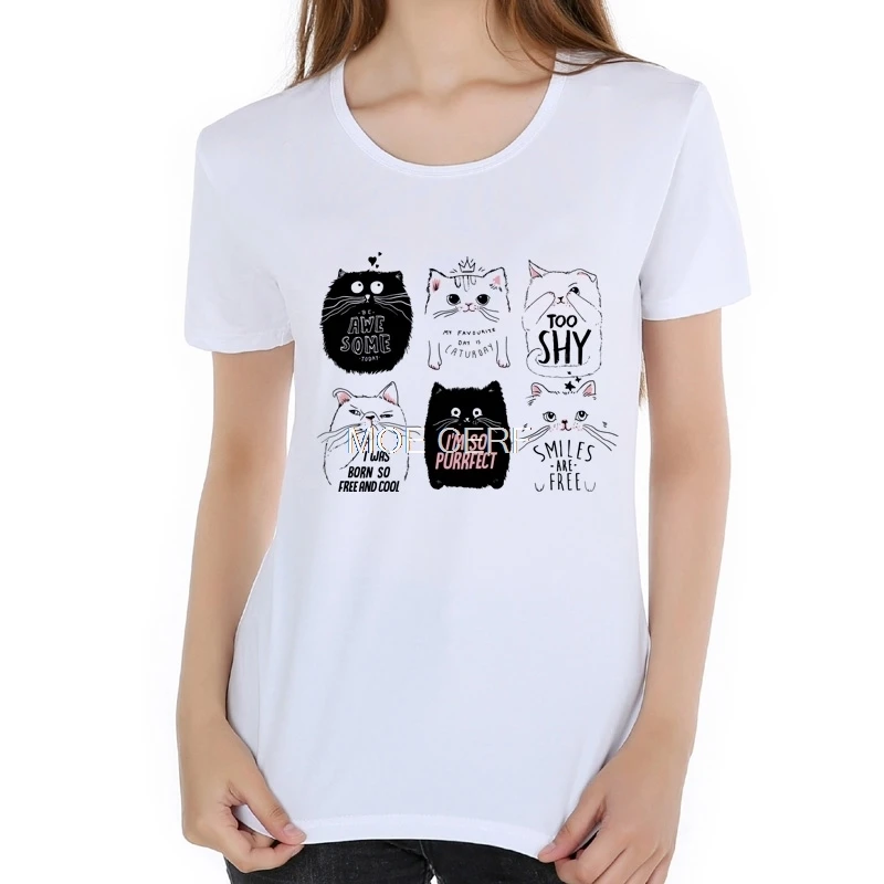 Lovely Cat Print Women tshirt Casual Funny Cartoon personality expression t shirt For Lady Girl Top Tee Hipster Clothing Y14-2