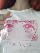 Took it at the post office. T-shirt without defects. The drawings are clear, bright. T-shirt fitted. The fabric is transparent and thin. I will wash in manual only. And i think it's easy to make puffs. That's a minus. And so for such money is normal.