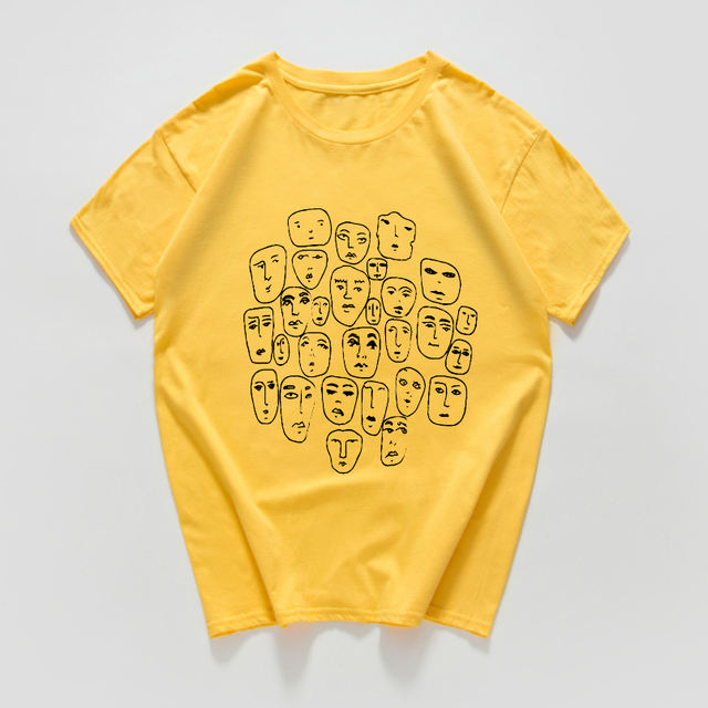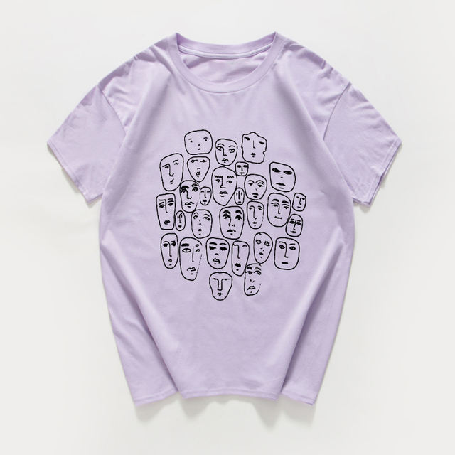 many faces funny T Shirt men Breathable cotton summer cool hip hop Hipster streetwear Tee shirt homme men clothes harajuku top