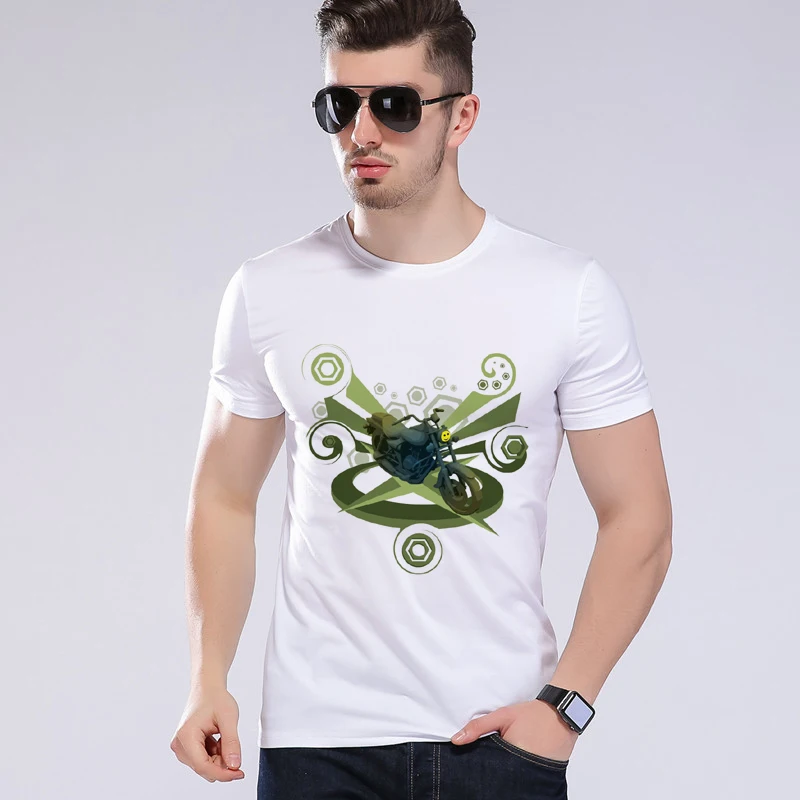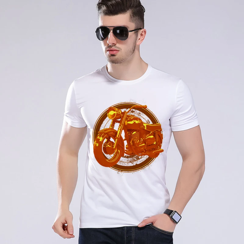 Men 3D Gold Chariot T Shirt Motorcycle Short-sleeved White T-Shirt Top Brand Clothing Can be customized Moe Cerf H8-52#