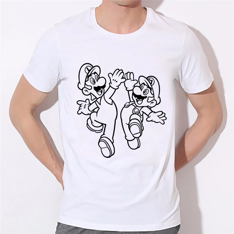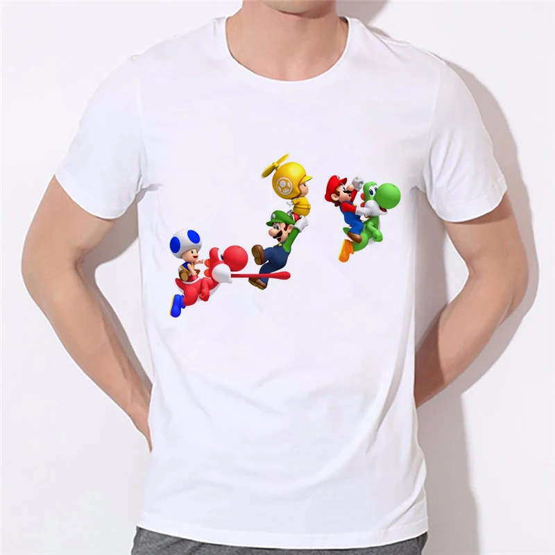 Men cartoon camisetas Men Shirt Tops Short Sleeve Swag T-shirts Fashion Game Super Smash Bros Mario boy T Shirts 37N-27#