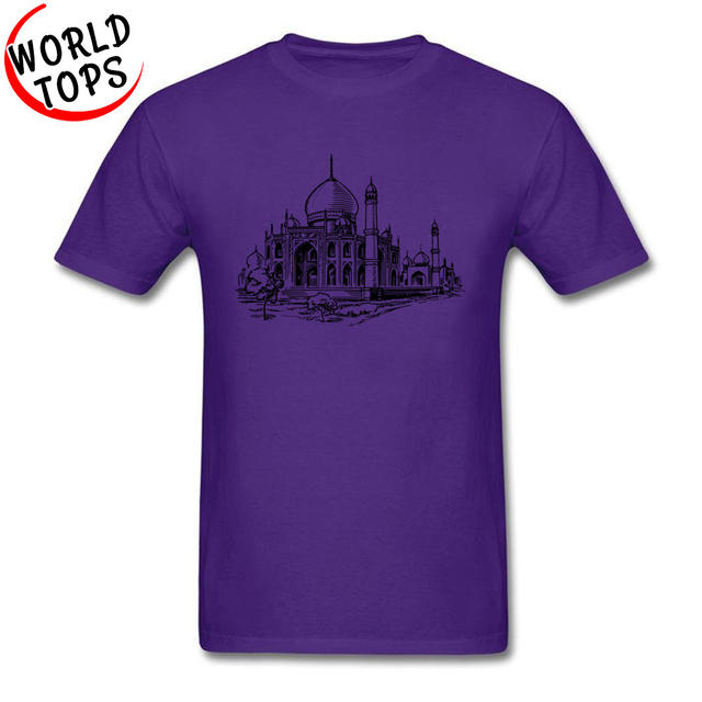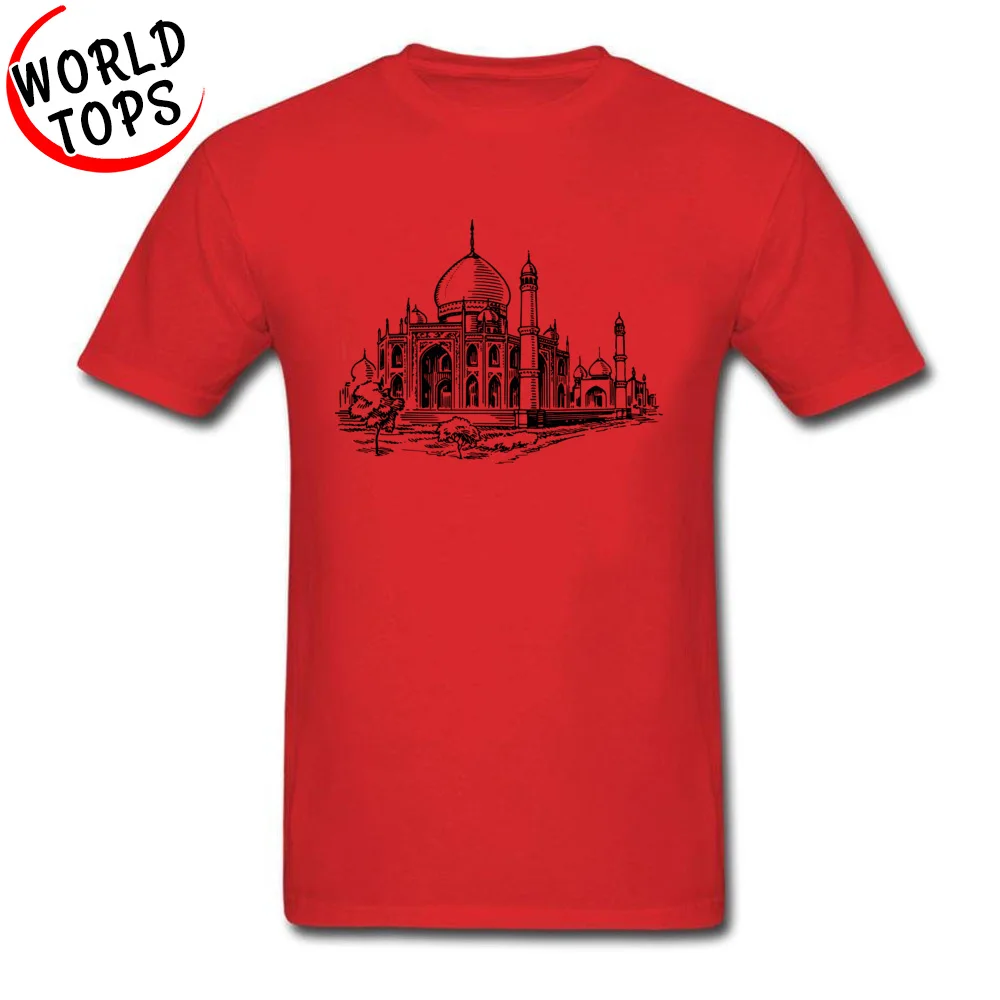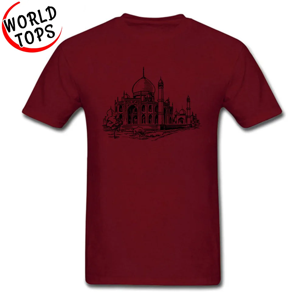 Men Tshirt Mosque Hassan Classic Architectural Style Image Pattern Tshirt O-Neck Short Sleeve Print Tee-Shirts NEW YEAR DAY