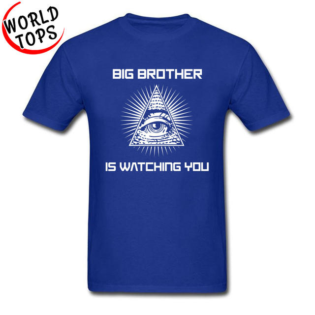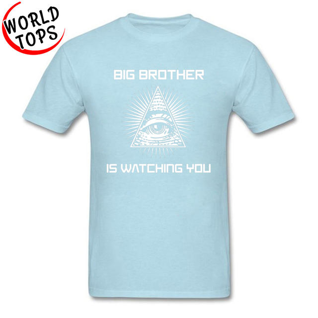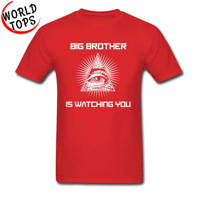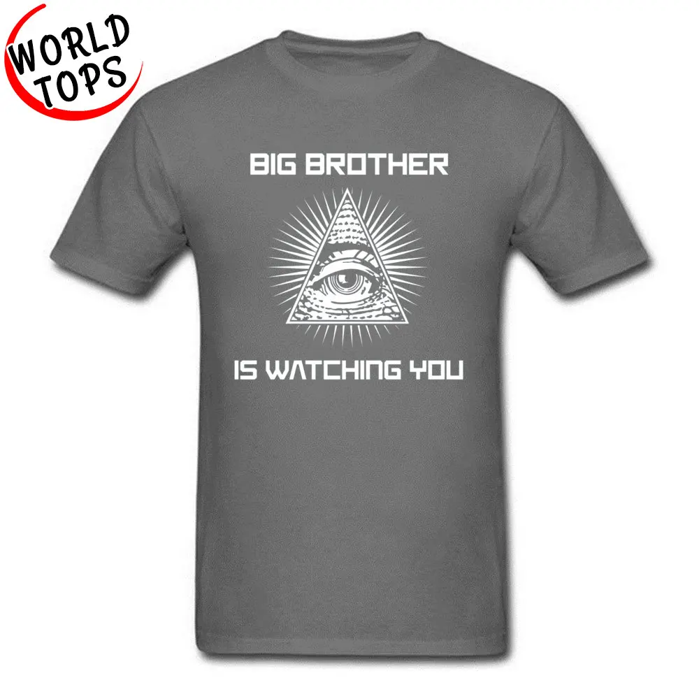 Men’s Father T Shirts Big Brother Is Watching You Illuminati Eye Black Tshirts 3D Print 100% Cotton Clothes Mother’s Day Gift