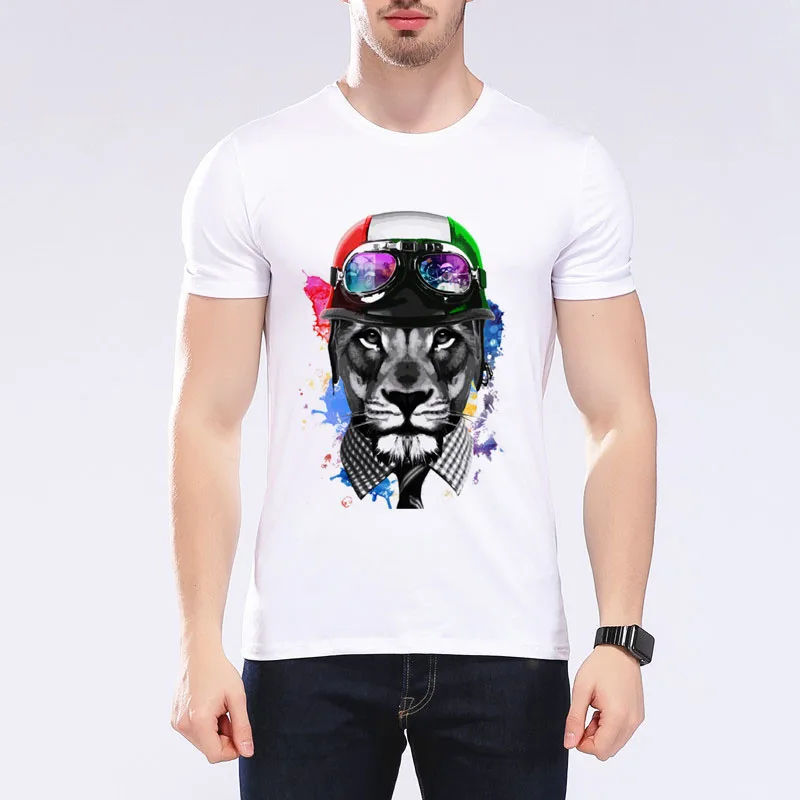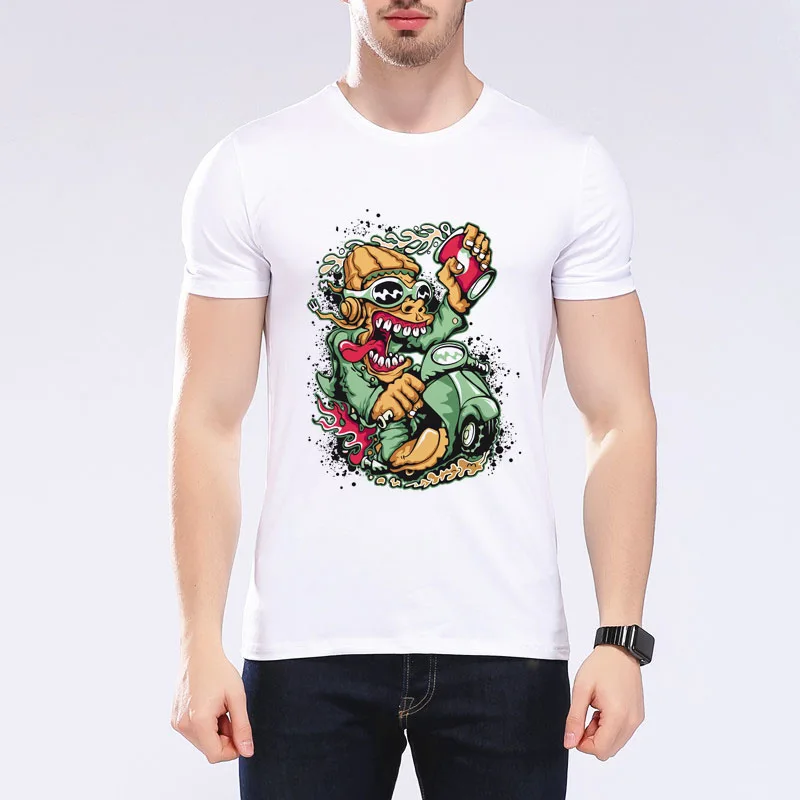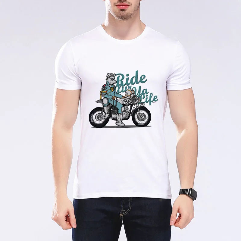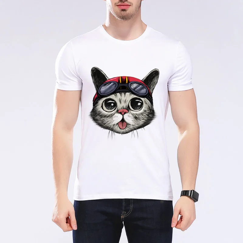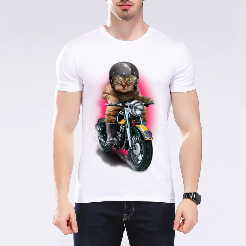 Men’s Funny Cat Riding Motorcycle T-shirt Motorcycle Enthusiasts T shirt Design O-Neck Short T-shirt Mens Casual Tops Tee G7-9#
