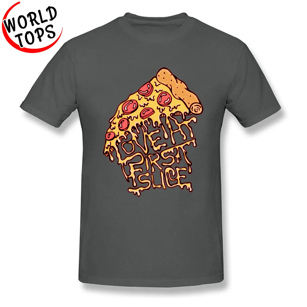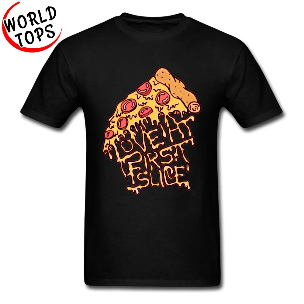 Product Name: Men's Summer Tees LOVE AT FIRST SLICE Pizza T-Shirt Vegan Food Image Tshirt For Youth Man Plus Size 3XL Black White Tops Tees