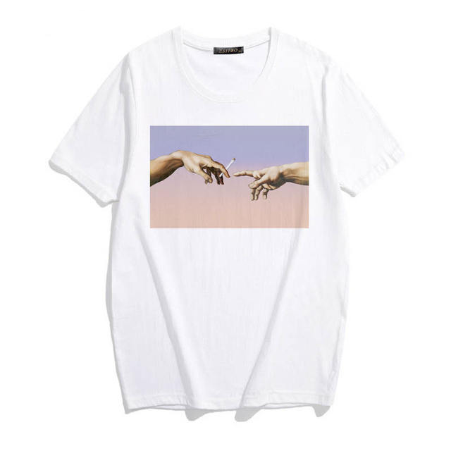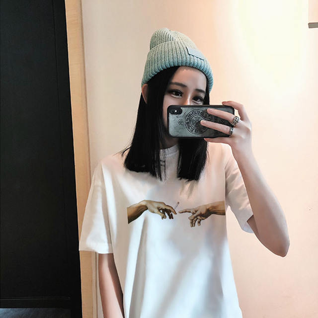 MICHELANGELO Harajuku Cool Funny personality Print t-shirts women t-shirts Ulzzang Hip Hop Streetwear Casual Women’s Tops tees