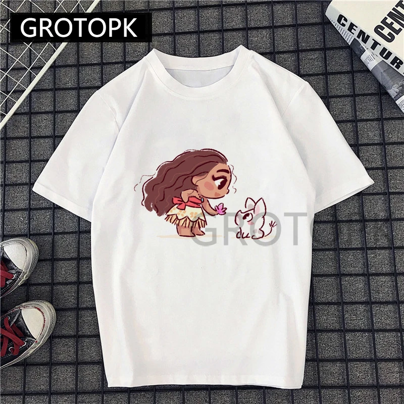Moana and Elfin Kawaii T Shirt Women Cotton Summer Short Sleeve Vogue Princess Printed Fun Harajuku Tshirt Plus Size New T-shirt