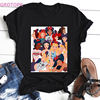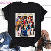 T-shirt slippery synthetics, but bright, black and print beautiful. Sleeves are absolutely not the same as in the photo, much longer.