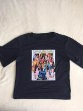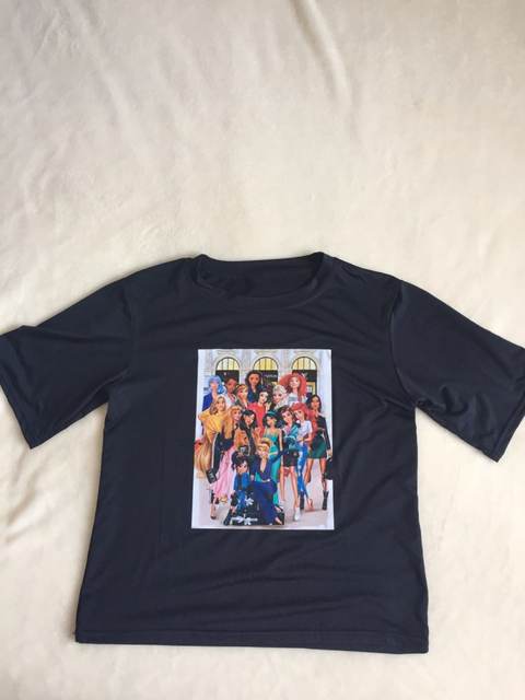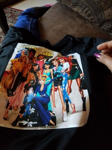 Fun shirt. Looks like pic. I am worried how the picture will look after I wish it bc it is a weird material that is on top of the shirt rather than a print on the shirt if that makes since so I will give it 4 stars instead of 5. It also runs a bit small but is still cute. Not enough to size up, if you don’t want too. Took a few weeks to arrive.
