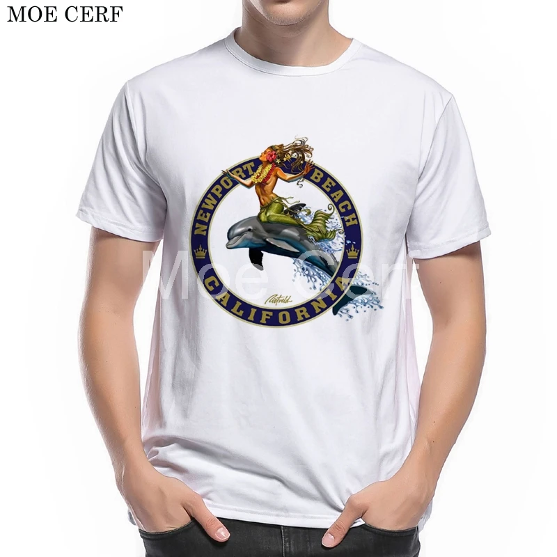 MOE CERF Mermaid Riding Dolphins Novelty T Shirt Men 3D Printed Tops Summer Short Sleeve Fashion Fitness Boy Tees L10-H-53