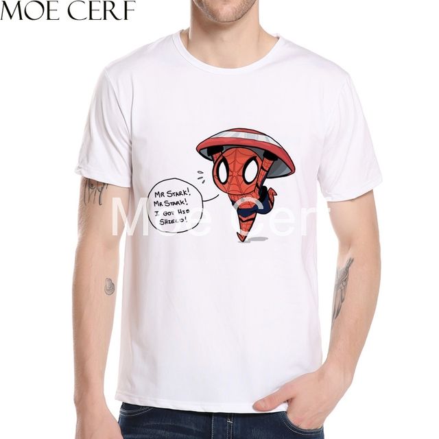 MOE CERF Superhero Spiderman Print T-shirt Men Summer Short Sleeves Cool Teen Tops Funny Design Hip-hop Teen Boy T-shirt L1-F-25