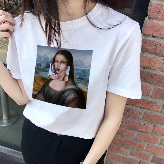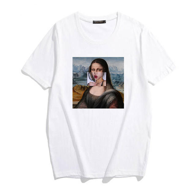 Mona Lisa cartoon fun fashion Women print T-shirt New summer spoof personality tops Harajuku casual loose Ulzzang women clothing