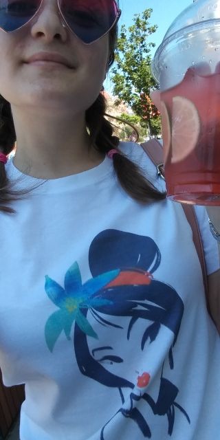 Great t-shirt! Very satisfied! The picture, however, is somewhat blurred, but i think it's an artistic design) the product is in itself an oversize, so even the smallest size will not sit in the head. It came in two with a small week, there was no smell, thread too! I take 2 more t-shirts for my mother))