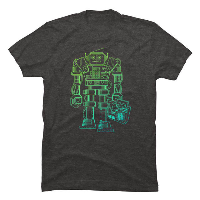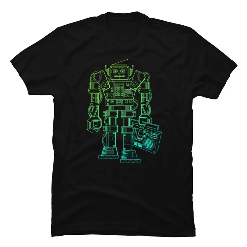 Music Robot Synthwave T Shirt Steampunk Mechanics Robot Men’s Pure Cotton Europe Tops Shirts ostern Day Christmas Camiseta