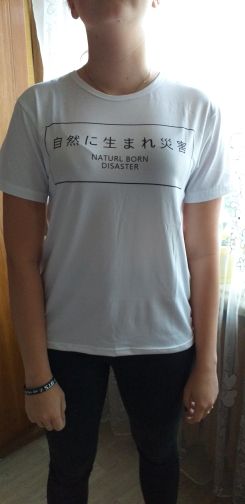 T-shirt is very good. Only the size does not match, i took xl it should be s, but my daughter really liked us height162cm. Seller recommend. Thank you. quality is super.