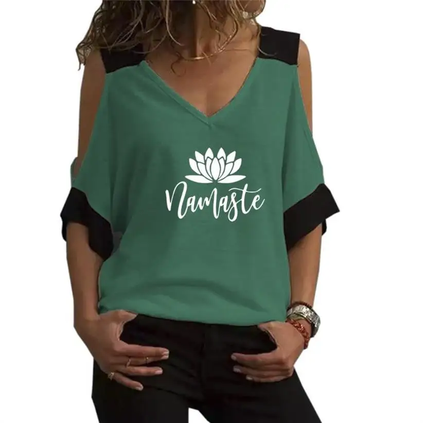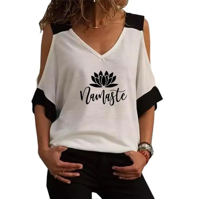 New Arrival Contrast Strapless V-Neck JESES Namaste Leumblr Sttters Print T-Shirt For Women Women T-Shirt Tshirt Treetwear Tops