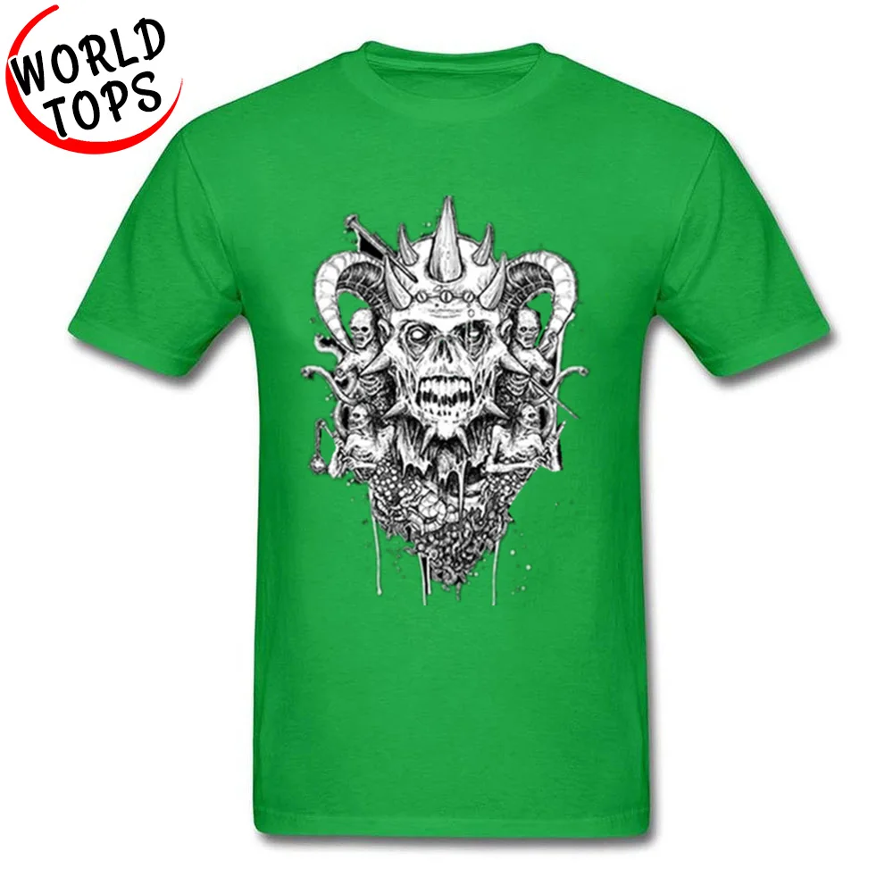 New Arrival Satan Skull Hip-Hop Heavy Metal Band Tee Shirt Deep Green Color T Shirt For Men Cool Tshirt Popular Short Sleeve