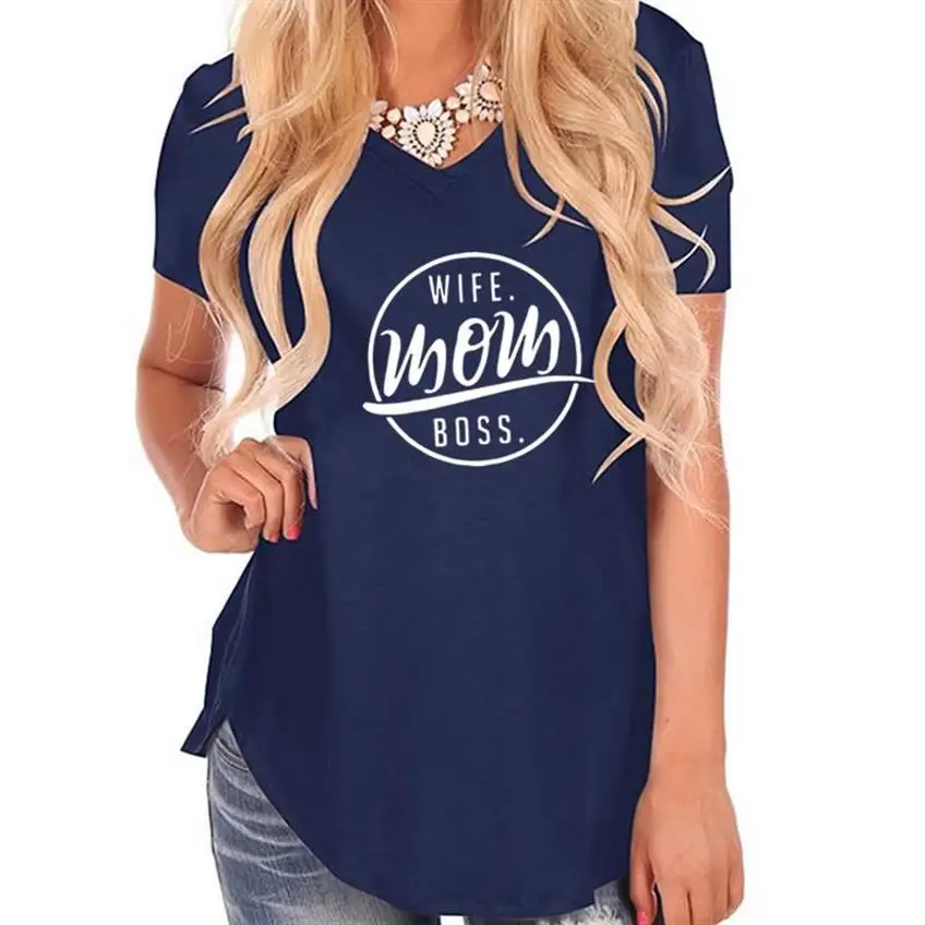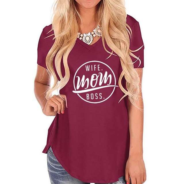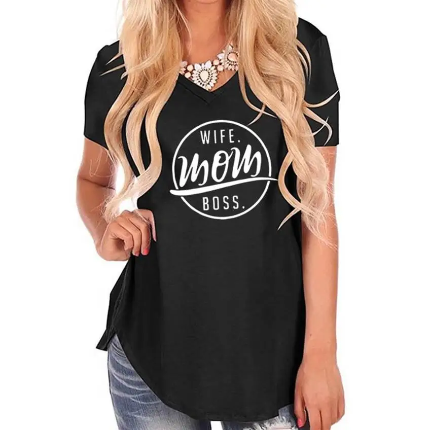 New Arrival WIFE MOM BOSS Letters Print Irregular Swallowtail T-Shirt for Women T-Shirt Female Tops Cotton Summer Mother’s Day