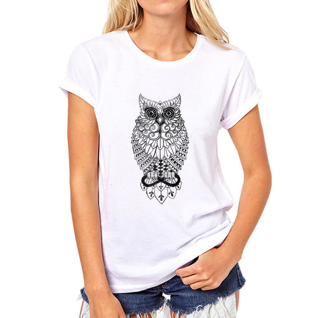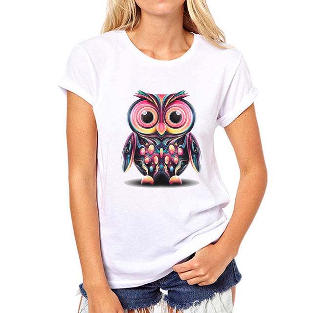New Brands Cartoon 21 Colors T shirt White Women T shirts Flag Owl Cute Casual Tops Ladies Hot Sale Tees 39W-2#