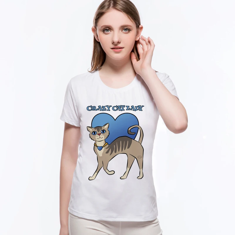 New Crazy Cat Women’s T-shirt Harajuku Style Cat T Shirt Funny Graphic Print Shirt Lady Short Sleeve Girl Tees N12-2#