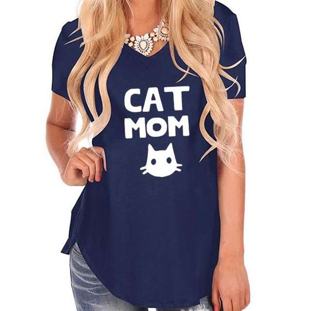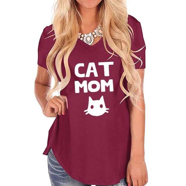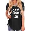 New Fashion CAT MOM Letters Print T-Shirt for Women Irregular Swallowtail T-Shirt Women Punk Summer Tops Mother’s Day Women