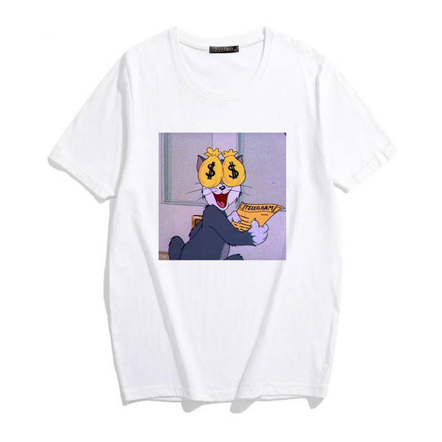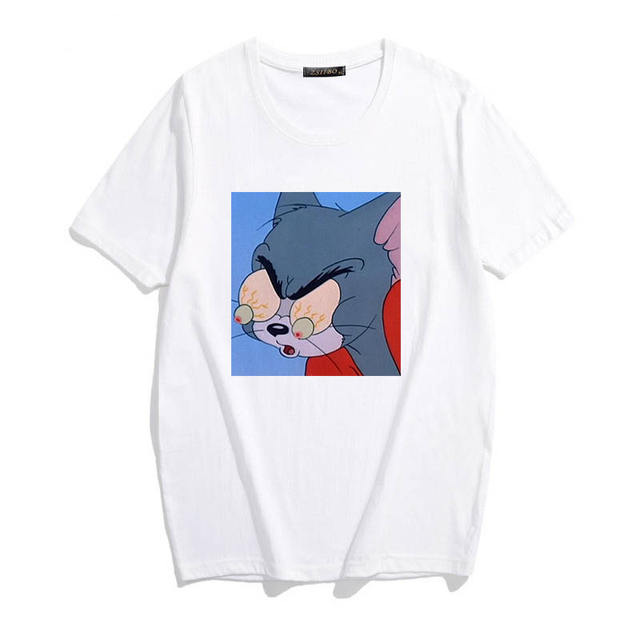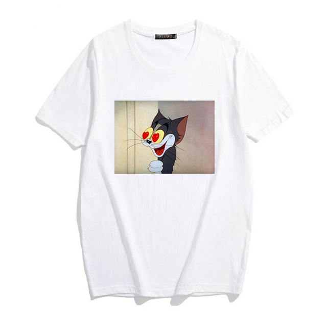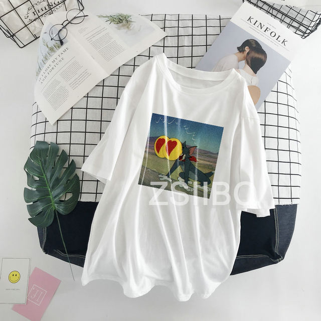 New Fashion Cat Tom Mouse Jerry Large Size Tops tees Loose Casual Short Sleeve Female T-Shirt Summer Harajuku Cartoon clothing