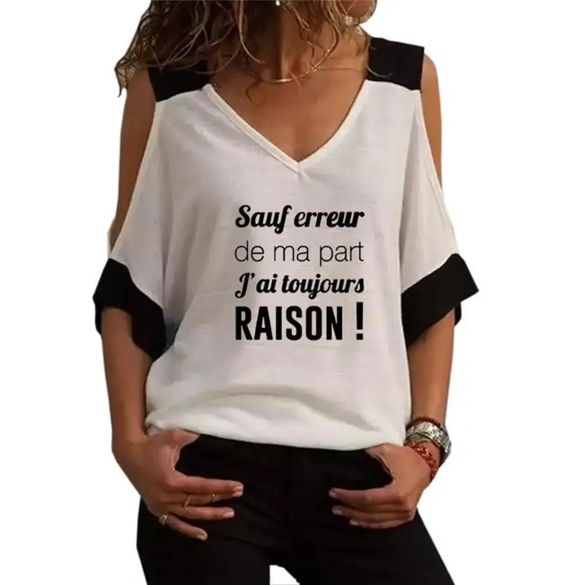 New Fashion Contrast Strapless V-Neck T-Shirt For Women RAISON Letters Print Women T-Shirt Tshirt Streetwear Harajuku T-shirt