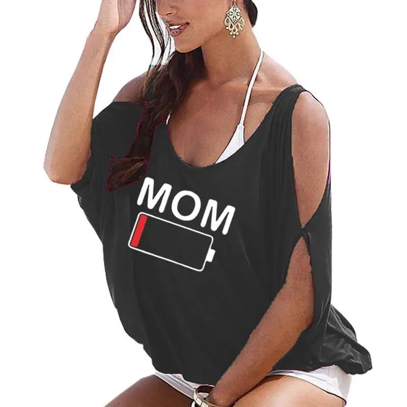 New Fashion Mom Letters Print Off The Shoulder Bat Sleeve T-Shirt for Women Women Harajuku T-Shirt Female Tshirt Plus Size