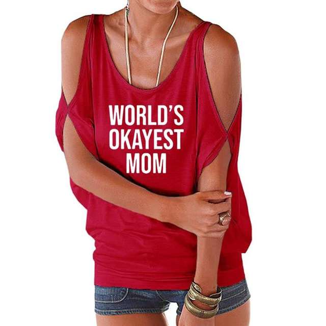 New Fashion Off The Shoulder Bat Sleeve T-Shirt for Women OKAYEST MOM Letters Print Harajuku Plus Size Tops Streetwear Cropped