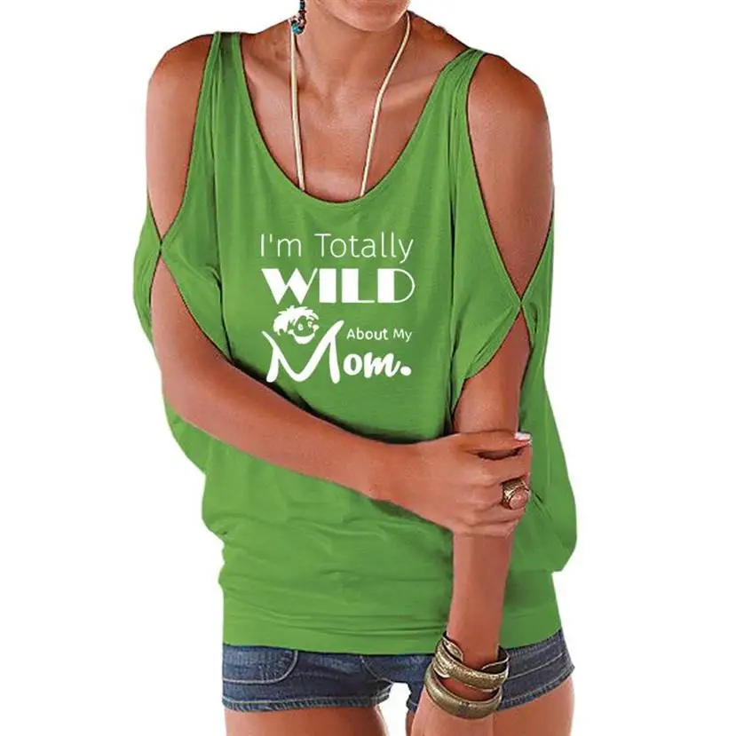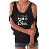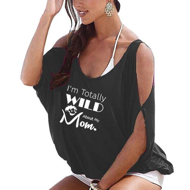 New Fashion Off The Shoulder Bat Sleeve T-Shirt for Women WILD Mom Letters Print Women Plus Size T-Shirt Tops Streetwear Cotton