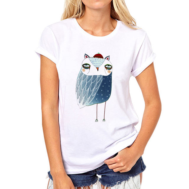 New Fashion Summer Women T Shirt Good Quality Women Short Sleeve TShirt Owl Tops Tee Cartoon printing girl T-shirt 39W-13#