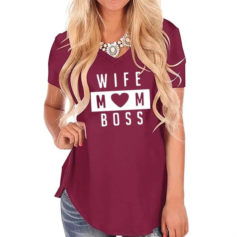 New Fashion WIFE MOM BOSS Letters Print T-Shirt for Women Irregular Swallowtail Women T-Shirt Harajuku Plus Size Mother’s Day
