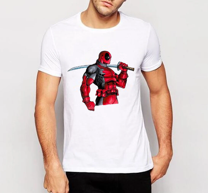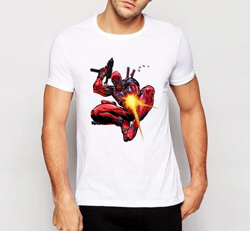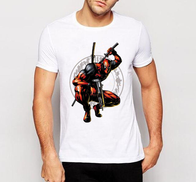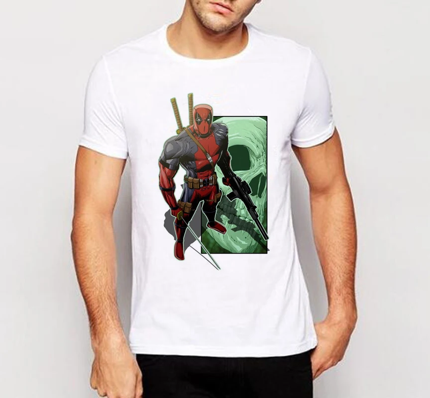 New Slim Deadpool Costume X-men white anime Man Casual T-shirt Mens T Shirts Fashion Printed T Shirt Homme W-134#