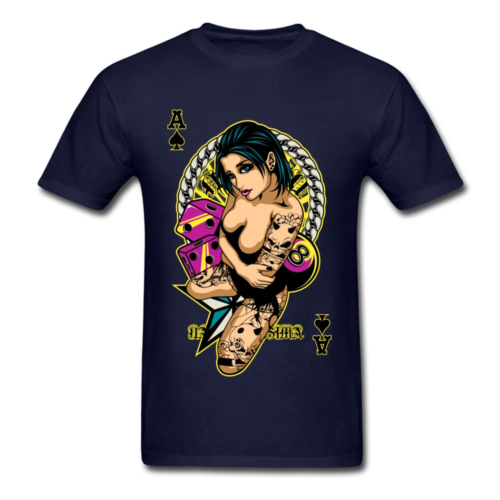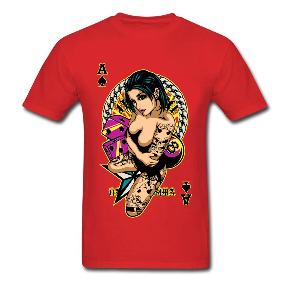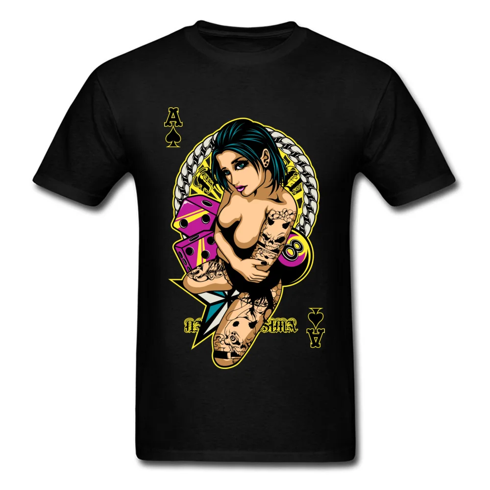 Product Name: Newest Novelty Casual T-Shirt Play Cards Spades Sex Tattoo Sex Girl Pin-Up Adulty T Shirt Sexy Coquette Queen Gaming Tshirt Mens