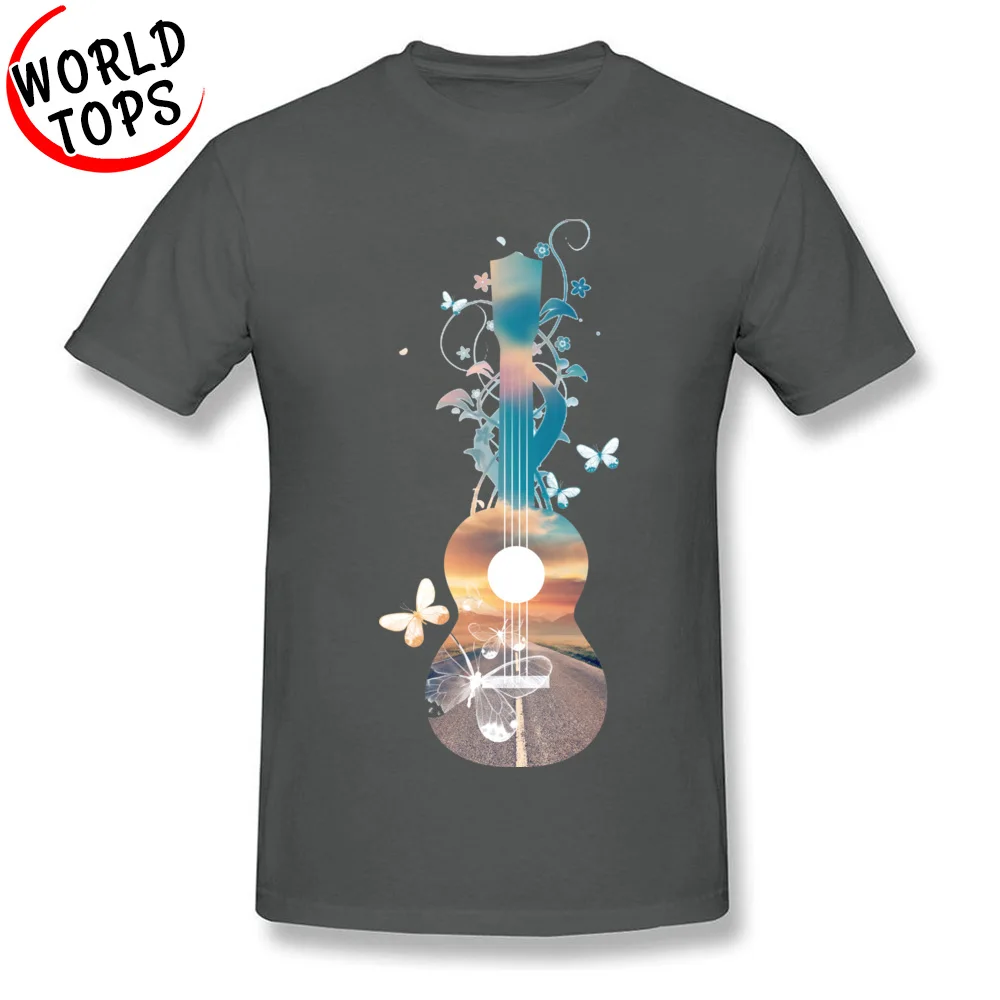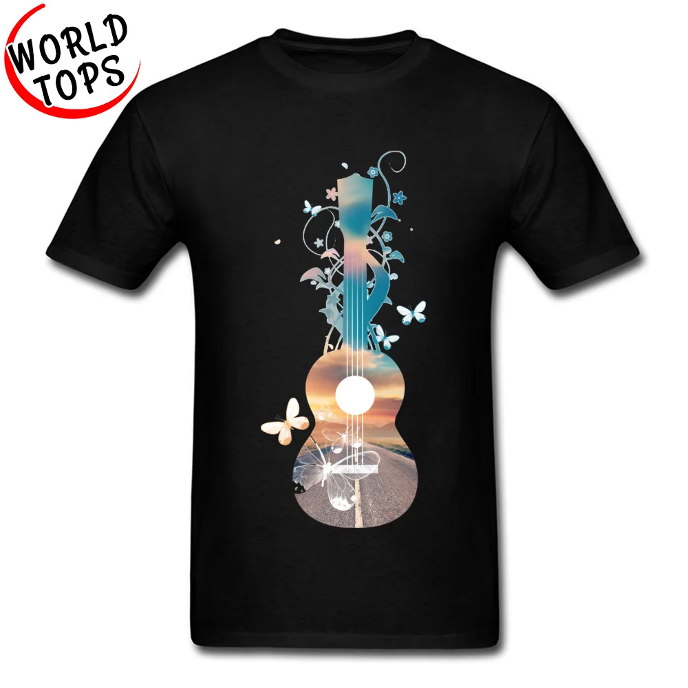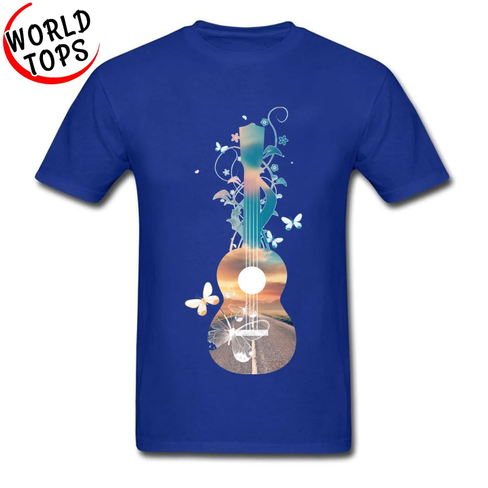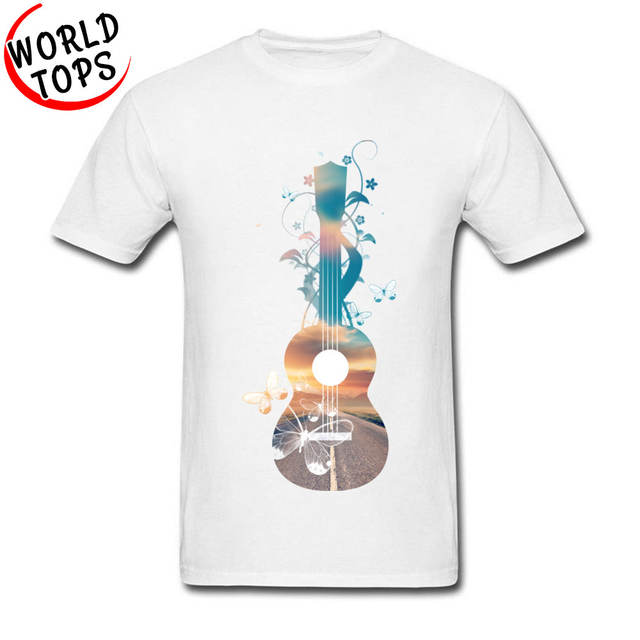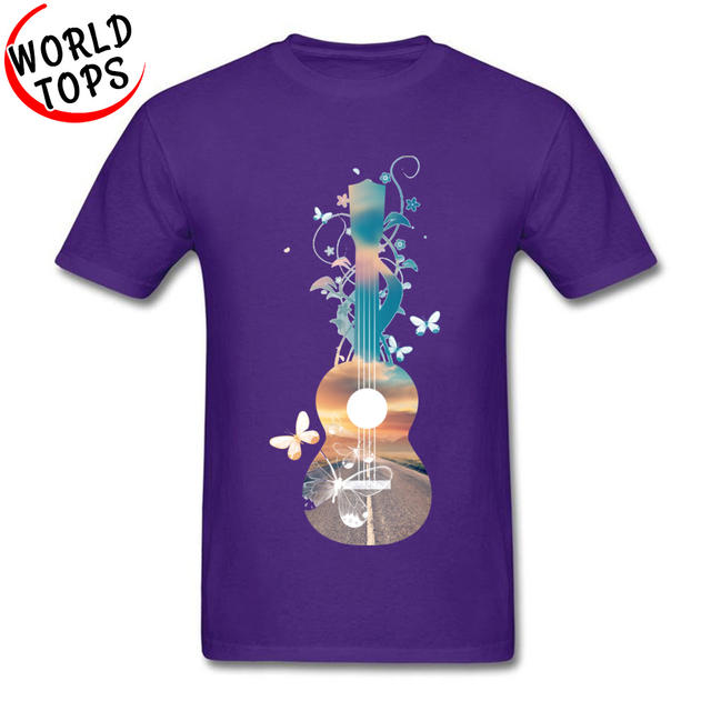 Normal Customized T-Shirt 100% Cotton Fabric Men T Shirt Hawaii Ukulele Guitar Sunset Dream Butterflies Music Classic Tshirt