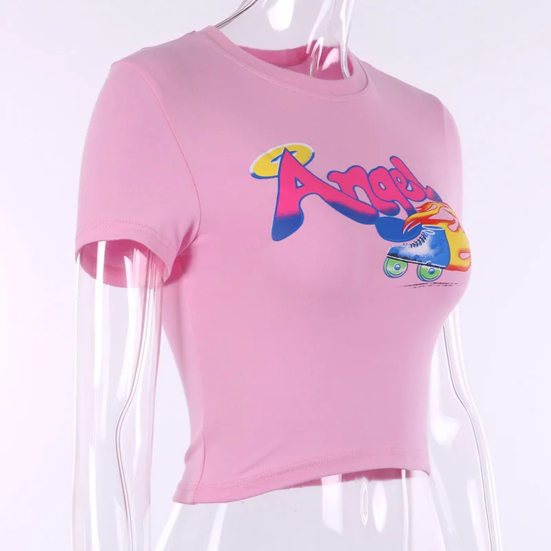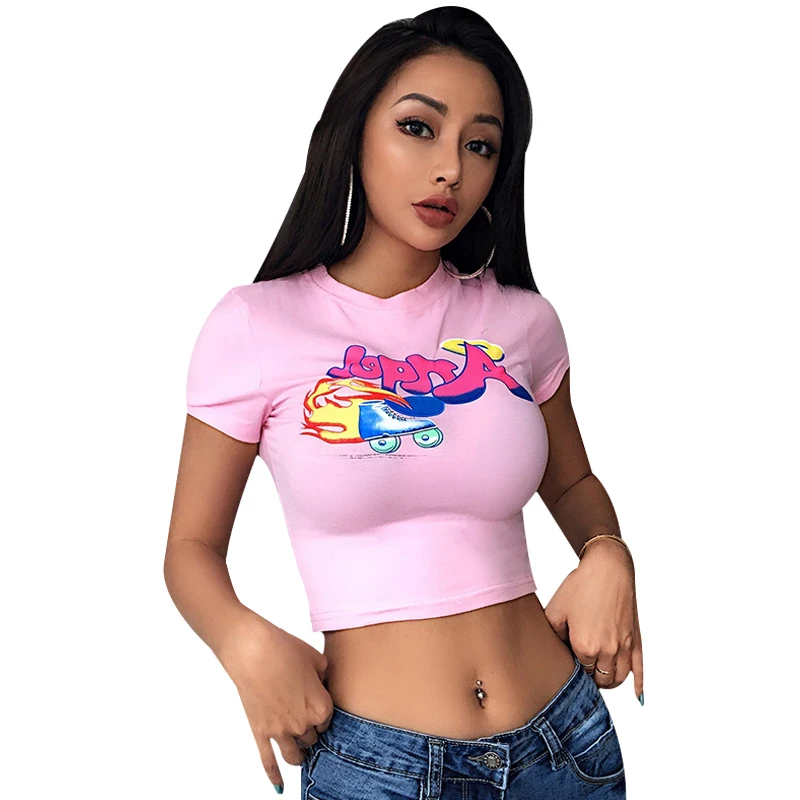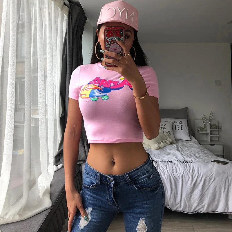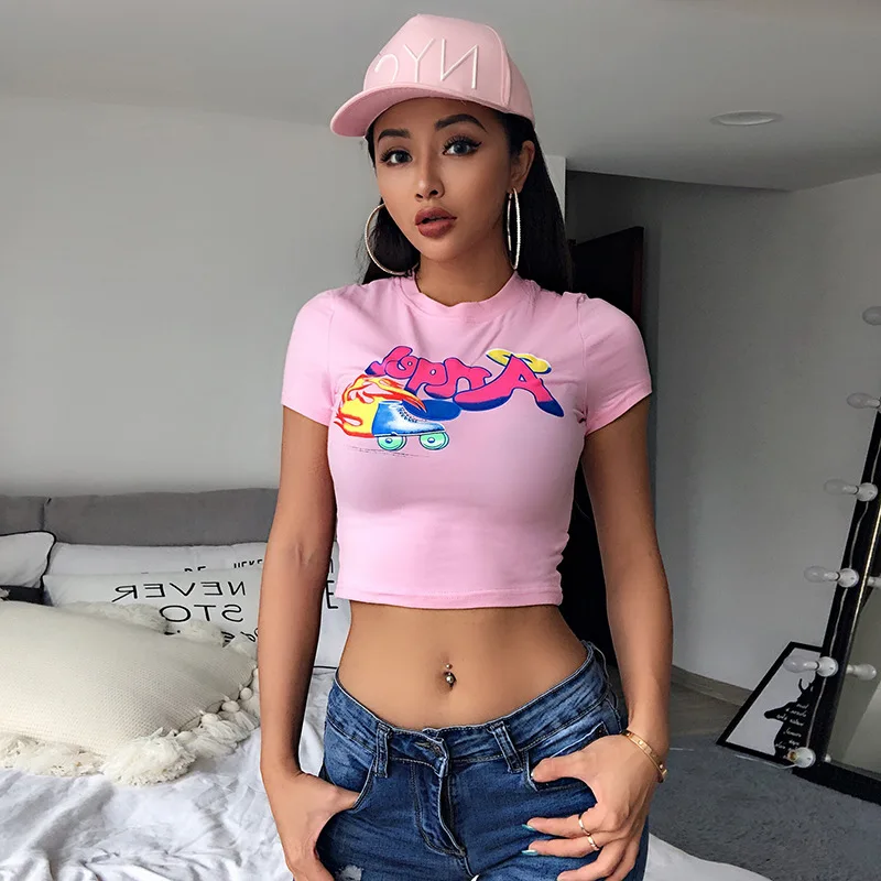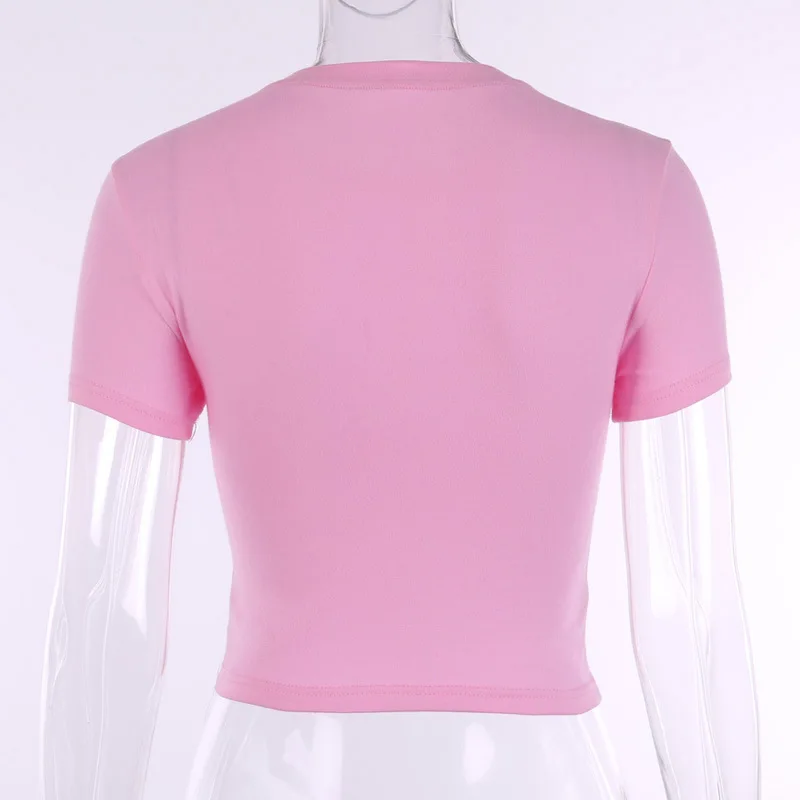 NORMOV Letter Print Pink T Shirt Women Fashion Summer Short Sleeve O-Neck Skinny T Shirt Female Casual Streetwear Short Tops