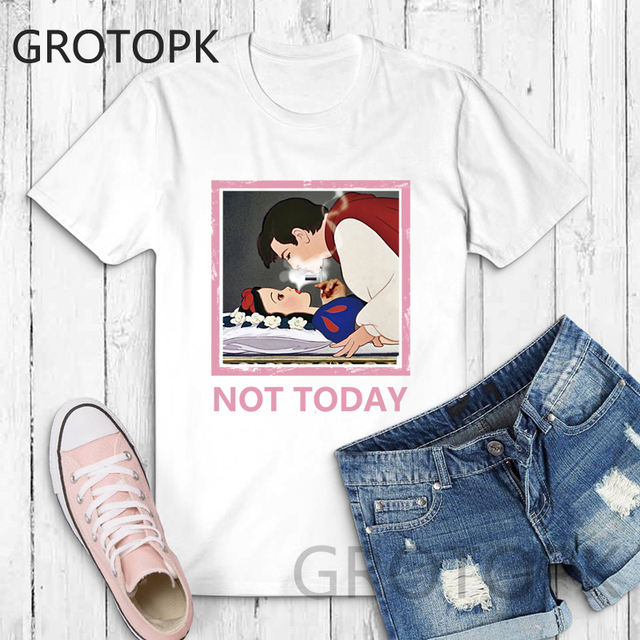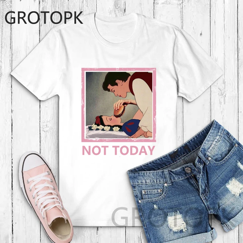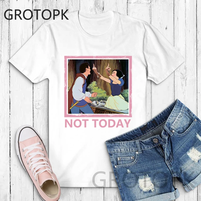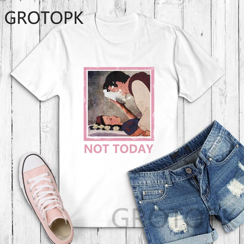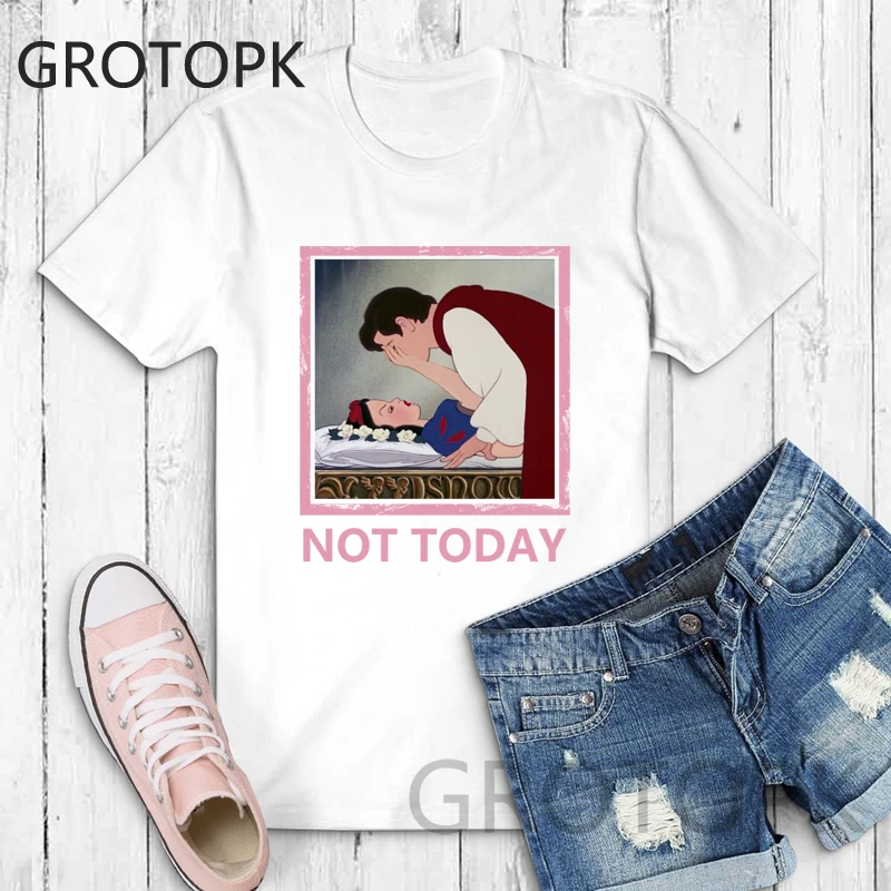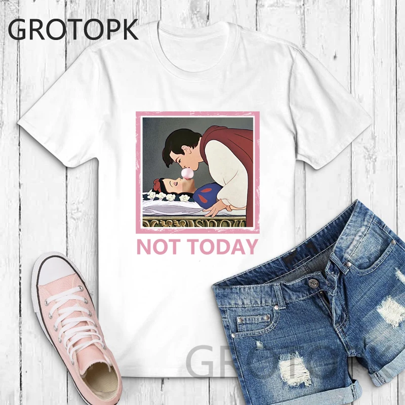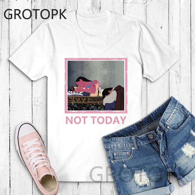 Not Today Spoof Love T-shirts for Women Harajuku Summer Cotton Vintage White T-shirt Dark Snow White Print Top Female Streetwear