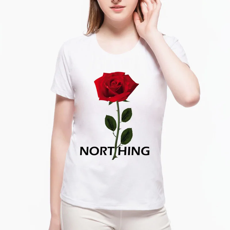 Nothing Letter Rose Floral Print T Shirt 2019 Summer Harajuku T-Shirt Women Short Sleeve Shirts Casual Slim Brand Tops L-4-15