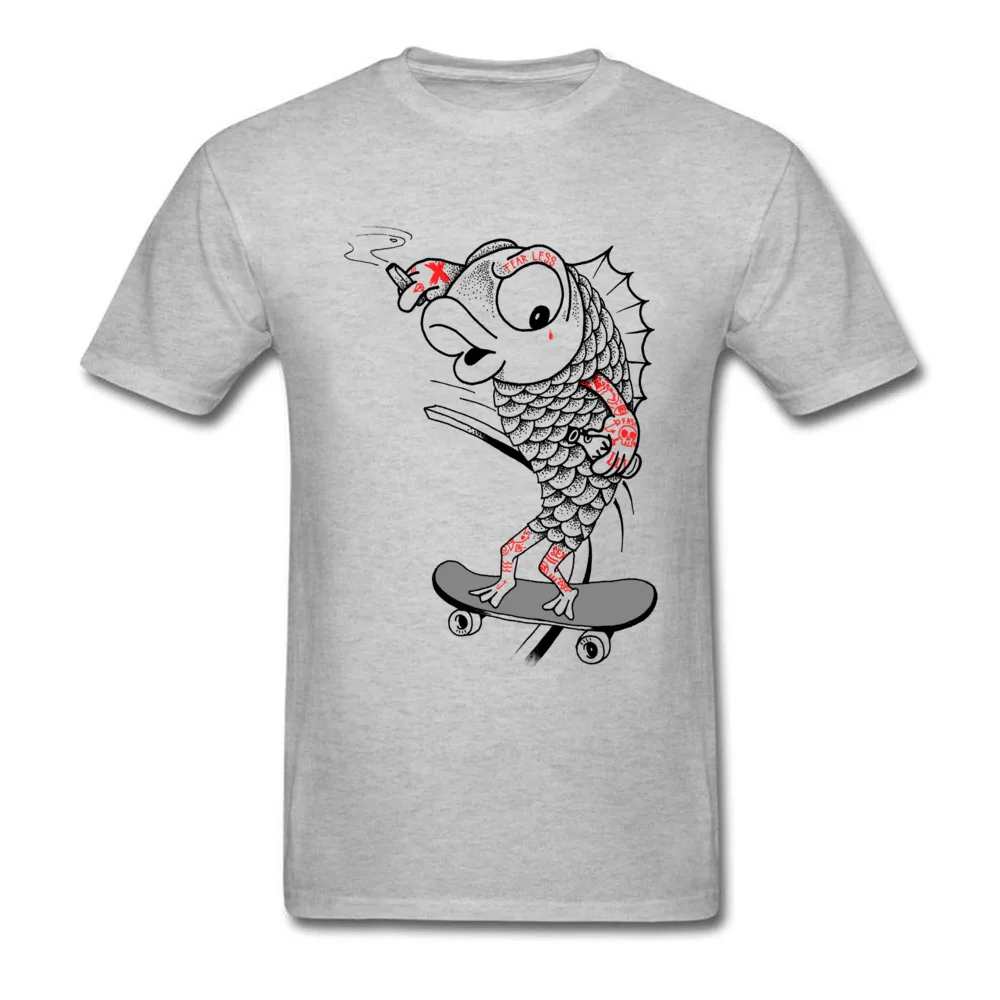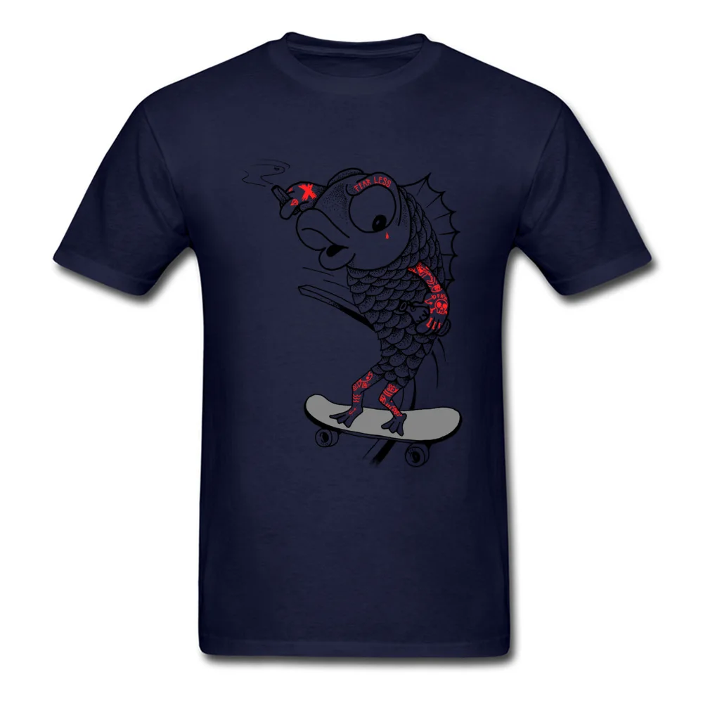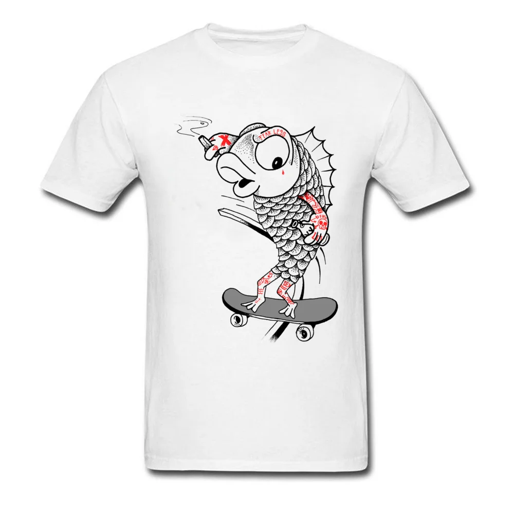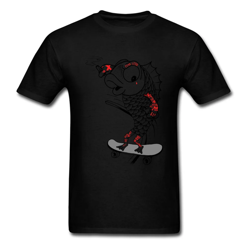 Product Name: Novelty Comics Tops T Shirt Round Neck Mens Cotton Fabric T-shirts Funny Fish Bones On Skateboards T Shirt For Student Best
