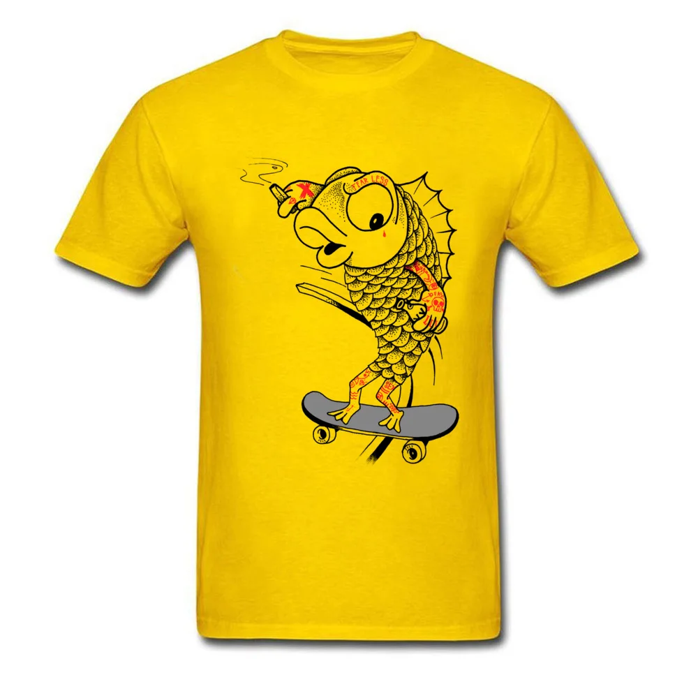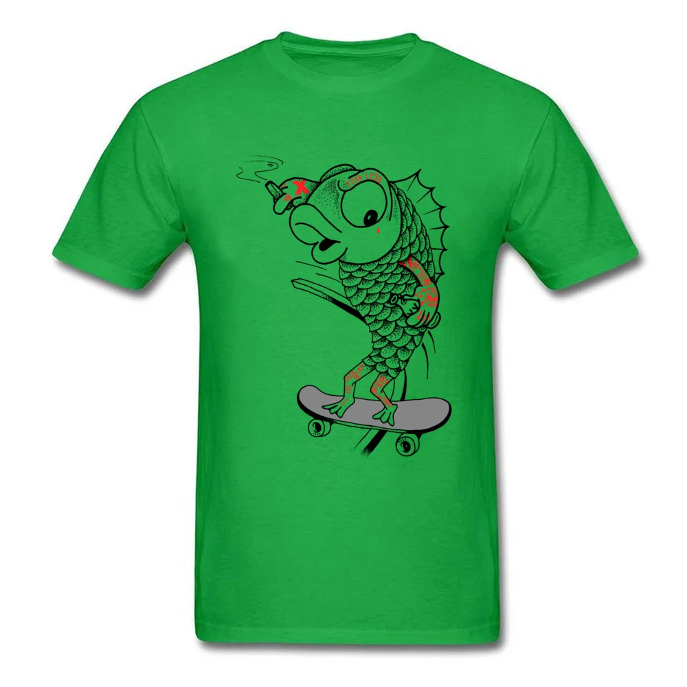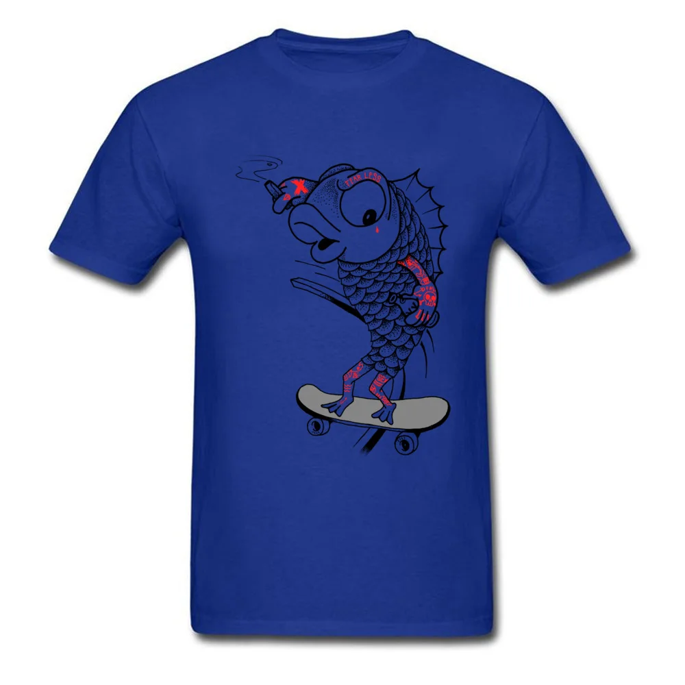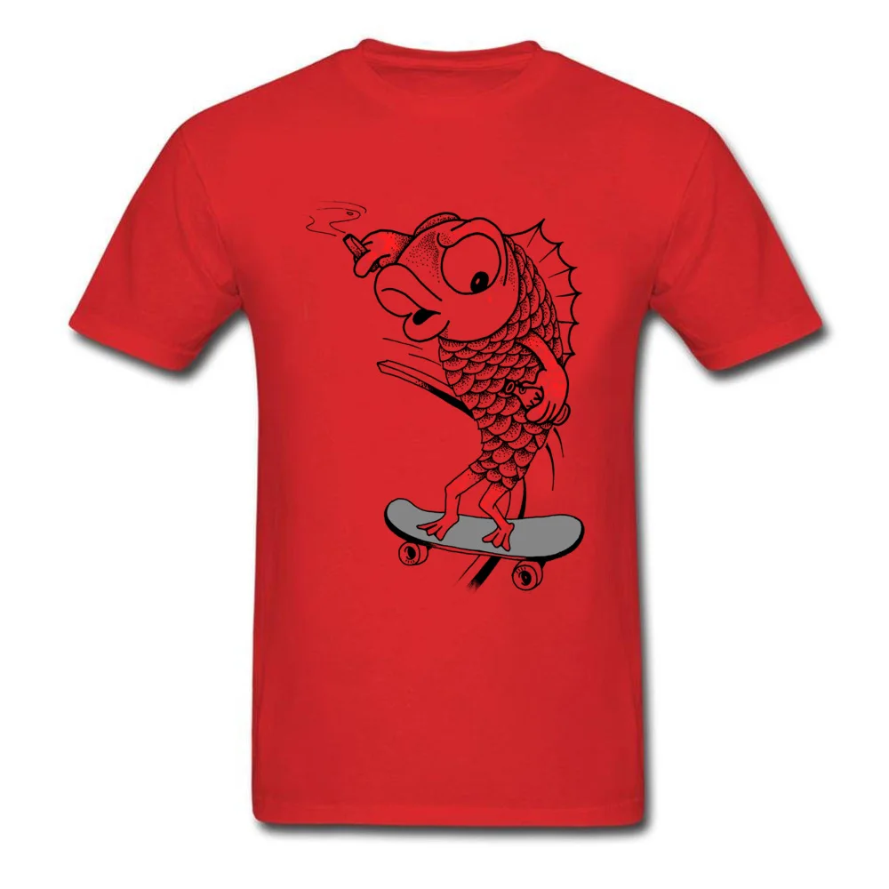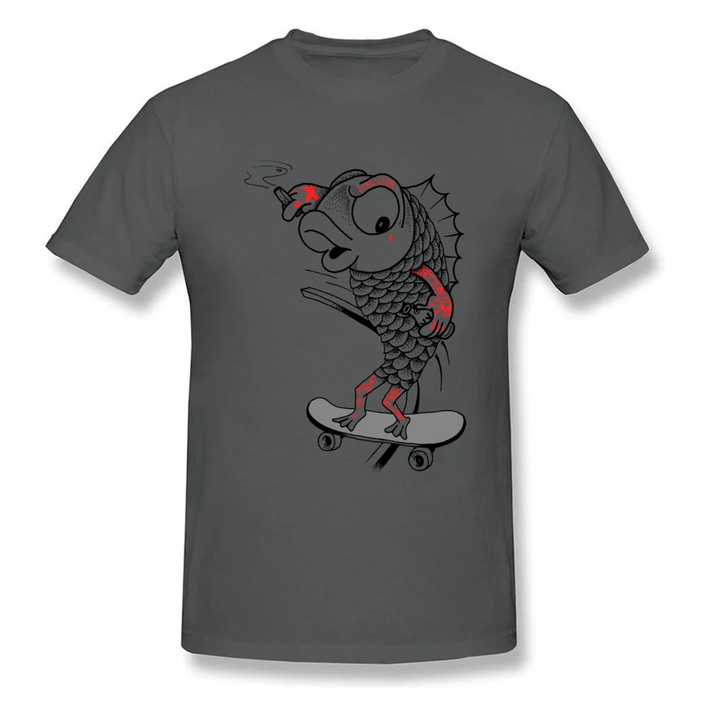 Product Name: Novelty Comics Tops T Shirt Round Neck Mens Cotton Fabric T-shirts Funny Fish Bones On Skateboards T Shirt For Student Best