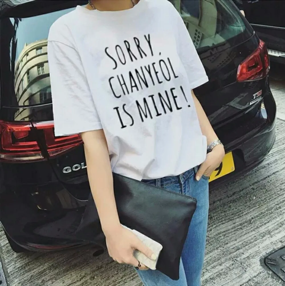 OKOUFEN EXO SORRY CHANYEOL IS MINE tshirt unisex fashion Clothing Oversize Graphic Letter Tops Women clothing Cotton t shirt