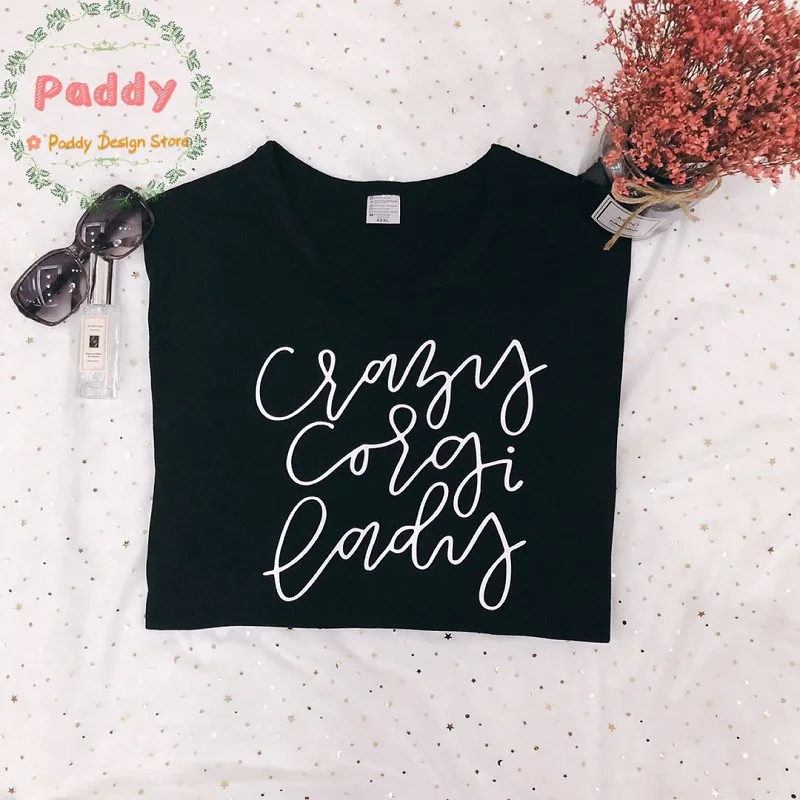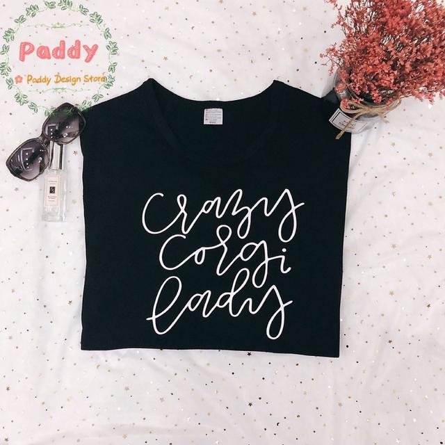 OKOUFEN fashion tumblr unisex cool cute tshirt crazy corgi lady t-shirt letter print womens mens tops tees summer style shirt